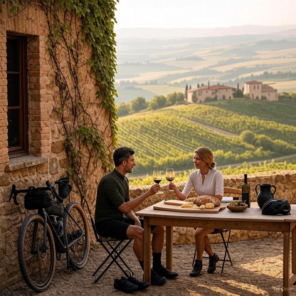 Vous pédalerez sur des routes blanches, des chemins de terre et des crêtes panoramiques, traversant villages médiévaux, anciennes chartreuses, lacs et salines naturelles. Le parcours allie histoire, culture et nature : des parcs où chevaux et daims vivent en liberté, aux villes historiques et musées emblématiques de l’ingéniosité italienne, jusqu’à un amphithéâtre naturel "Théâtre du Silence" qui accueille chaque année Andrea Bocelli.